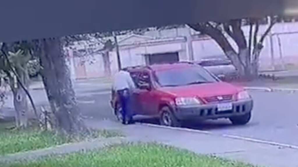 Las imágenes captadas por una cámara de seguridad muestra que el robacarros camina sobre la banqueta hasta llegar a su objetivo, una camioneta de color rojo. Abre la puerta del copiloto y tranquilamente se lleva el automotor en menos de 40 segundos. “Le robaron el carro a un amigo. (…). Por favor compartir o reportar si la ven.”, dice la publicación con la siguiente información: