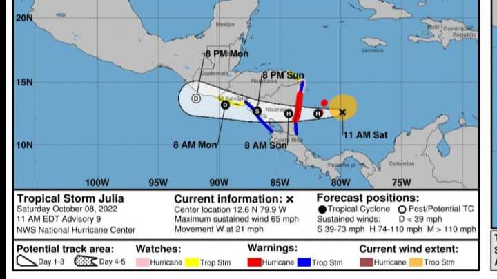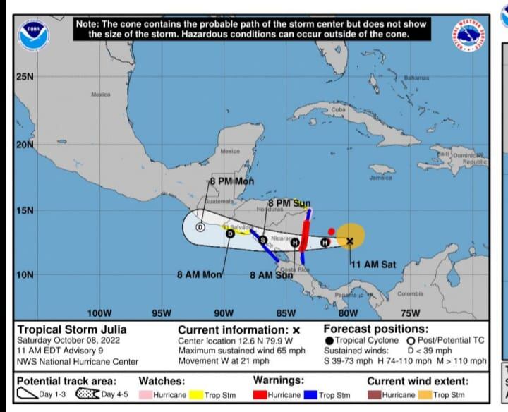 La región sur del país sería la más afectada debido a que Julia atravesará Centroamérica y “tocará” el océano Pacífico.