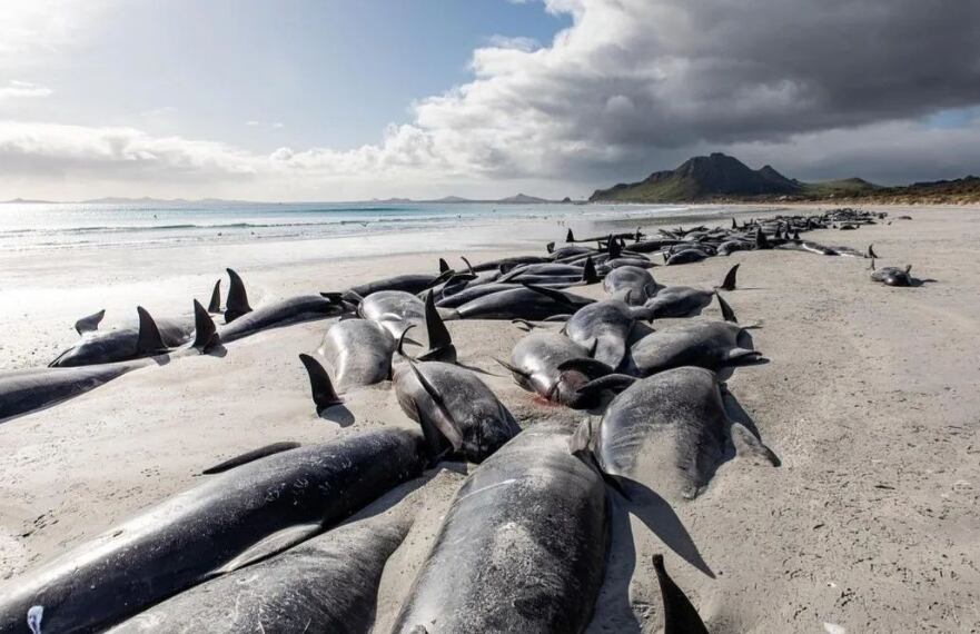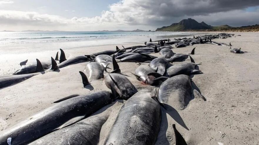 El Gobierno de Nueva Zelanda confirmó que murieron alrededor de medio millar de ballenas piloto varadas en las remotas islas Chatham, tras haber descartado una misión de rescate por la amplia presencia de tiburones en la zona.