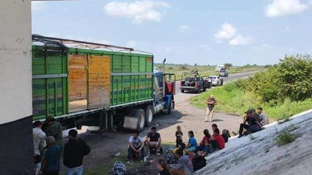 Los agentes lograron ubicar al camión metros adelante donde comprobaron que el chofer había huido, mientras 51 personas de distintas nacionalidades que viajaban en el vehículo permanecían dispersas alrededor del mismo.