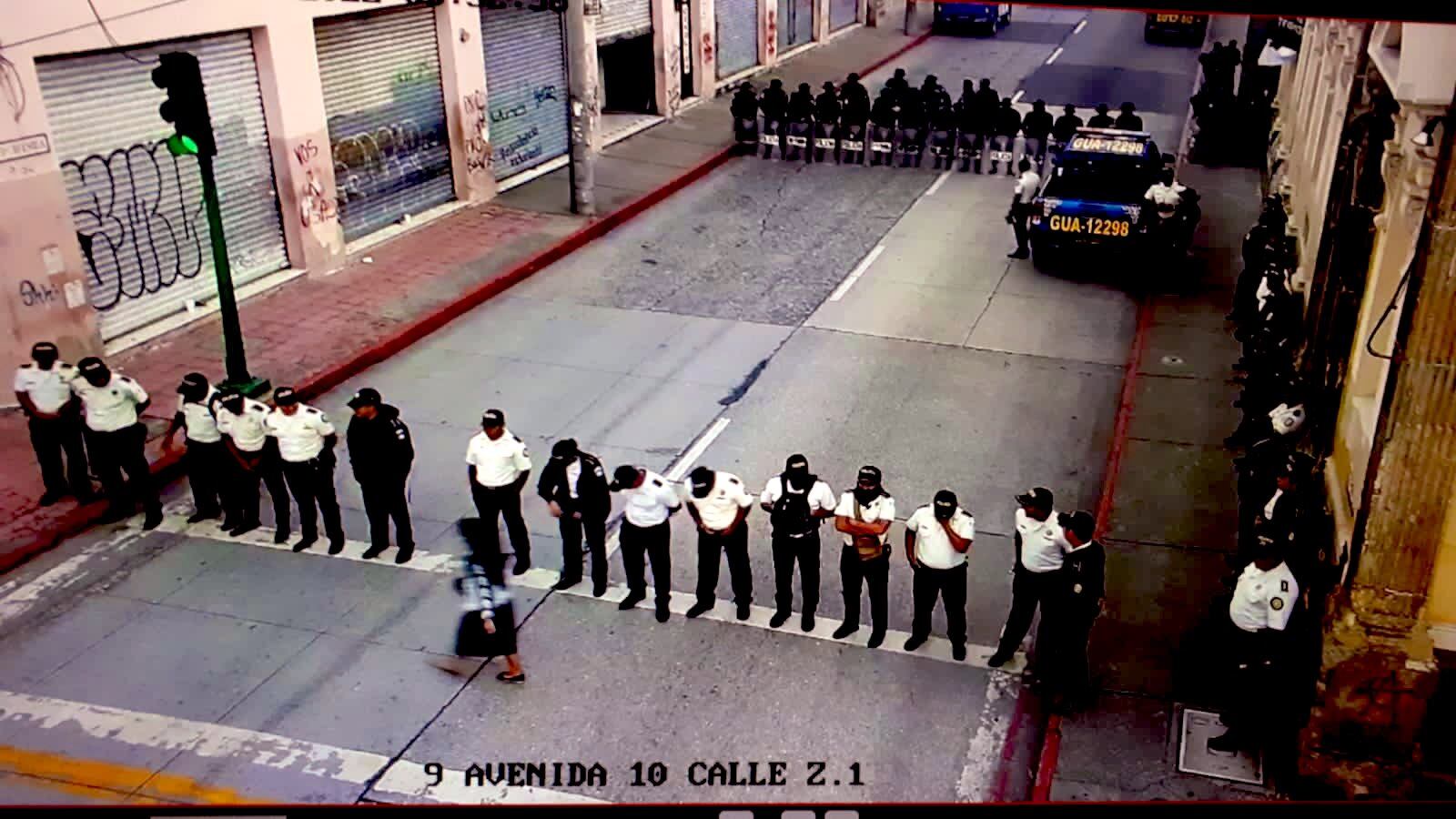 “No hay paso en Congreso de la República tras bloqueos por PNC y quienes protestan. Manifestantes se ubican en 8 avenida 9 calle y 10 calle, fuerzas de seguridad en 9 avenida 10 calle. No utilice 8 avenida de 5 calle a 9 calle, ni 9 calle de 5 avenida a 7 avenida zona 1″, explicó Montejo.