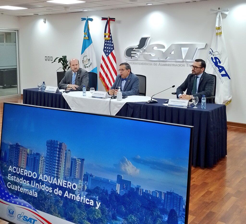 Guatemala y Estados Unidos (EE.UU.), por medio de autoridades de la Superintendencia de Administración Tributaria (SAT) y el embajador estadounidense William Pop, oficializaron la entrada en vigencia del acuerdo aduanero entre ambos países.