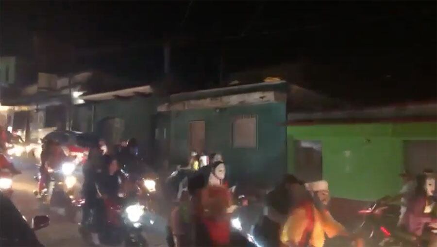 Pero varios de ellos también comenzaron a correr como confundidos, lo cual propicio que unas personas que circulaban en un picop, según indican, realizaran varios disparos al aire, lo cual causó mayor confusión.
