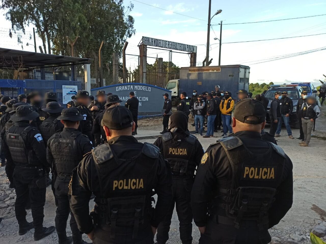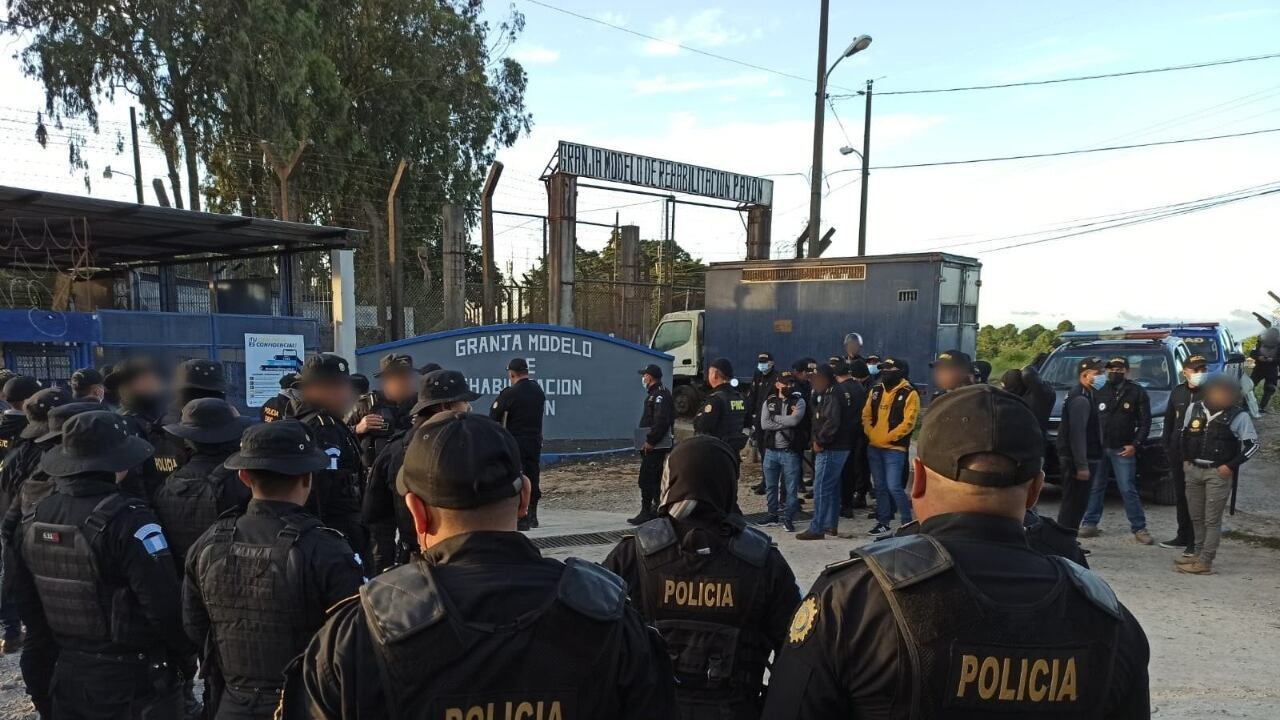 Agentes de diferentes comisaría de la Policía Nacional Civil (PNC) y del Ministerio Público participan en una requisa en la Granja Modelo de Rehabilitación Pavón en busca de ilícitos y evitar que los reos utilicen teléfonos celulares, y cableados para facilitar cualquier tipo de comunicación al exterior.