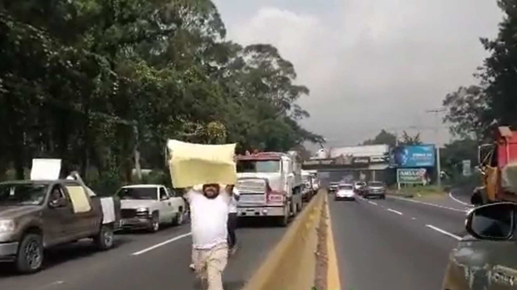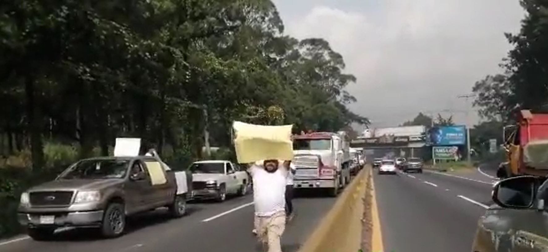 Un grupo de transportistas manifestó en la ruta al Pacifico en rechazo a los altos precios de los productos de la canasta básica y también por los precios altos de los combustibles.