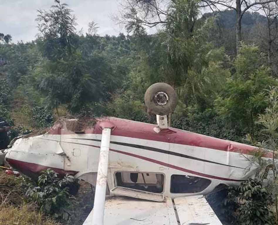 “Dos personas resultaron con golpes y lesiones, luego de que la avioneta en la que se transportaban se desplomara en una finca de Antigua Guatemala. La avioneta cayó sobre una área de la finca y quedó volcada sobre árboles”, detalló ese cuerpo de socorro.