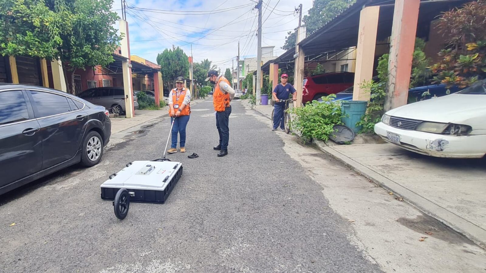 Se hizo una evaluación utilizando un radar de penetración de suelo con el objetivo de verificar socavamientos en las calles, grietas estructurales y daños en las viviendas, informó la Conred.
