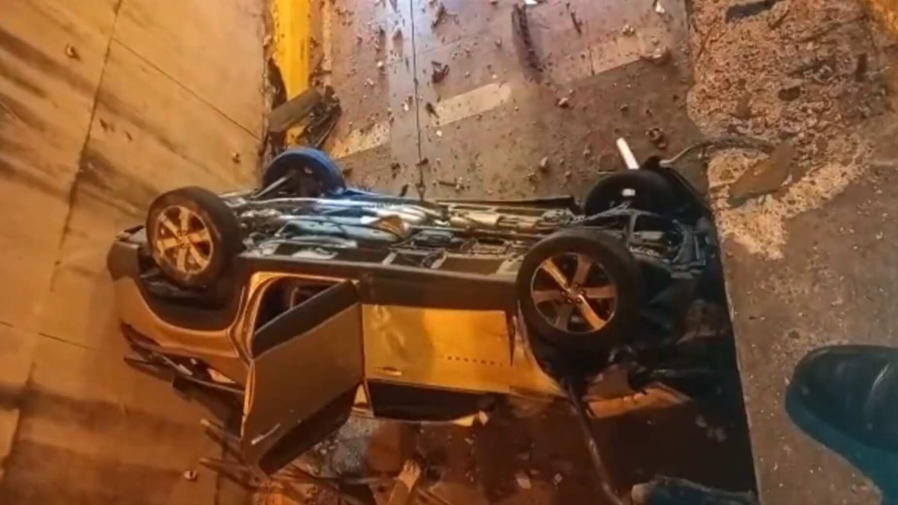 Un automóvil cayó del viaducto Papa Francisco, en el bulevar Los Próceres entre 26 y 27 avenida de la zona 10, tras accidentarse con otro vehículo, la madrugada de este jueves 10 de noviembre, informó el intendente Municipal, Amílcar Montejo.