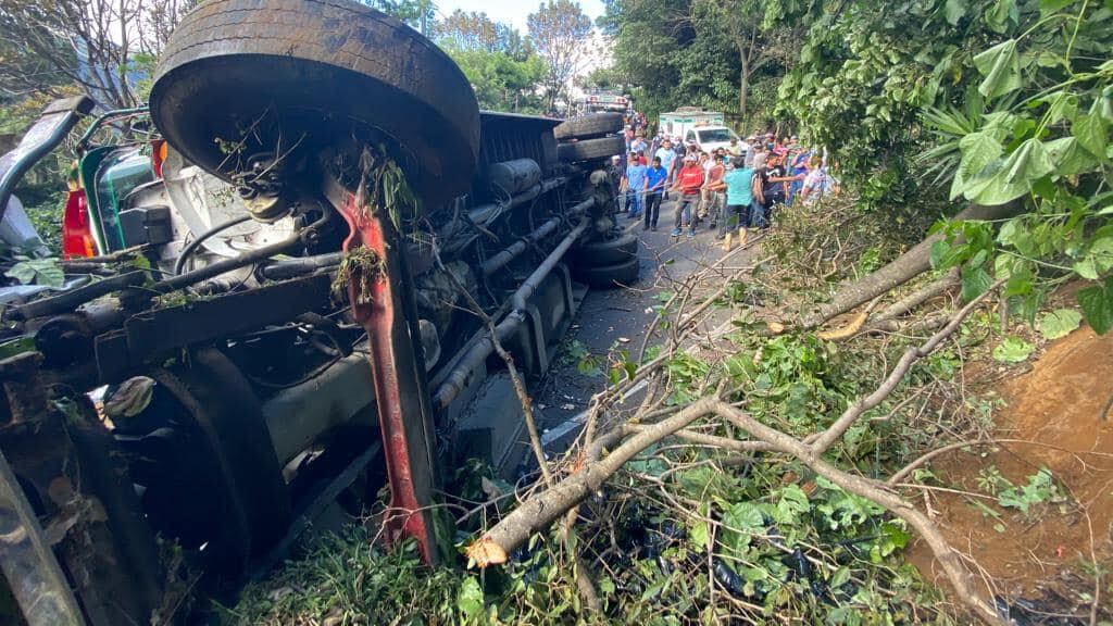Un bus del transporte extraurbano volcó en el kilómetro 77 ruta que comunica a Patzicía con Acatenango, Chimaltenango, informaron los de Bomberos Municipales Departamentales.