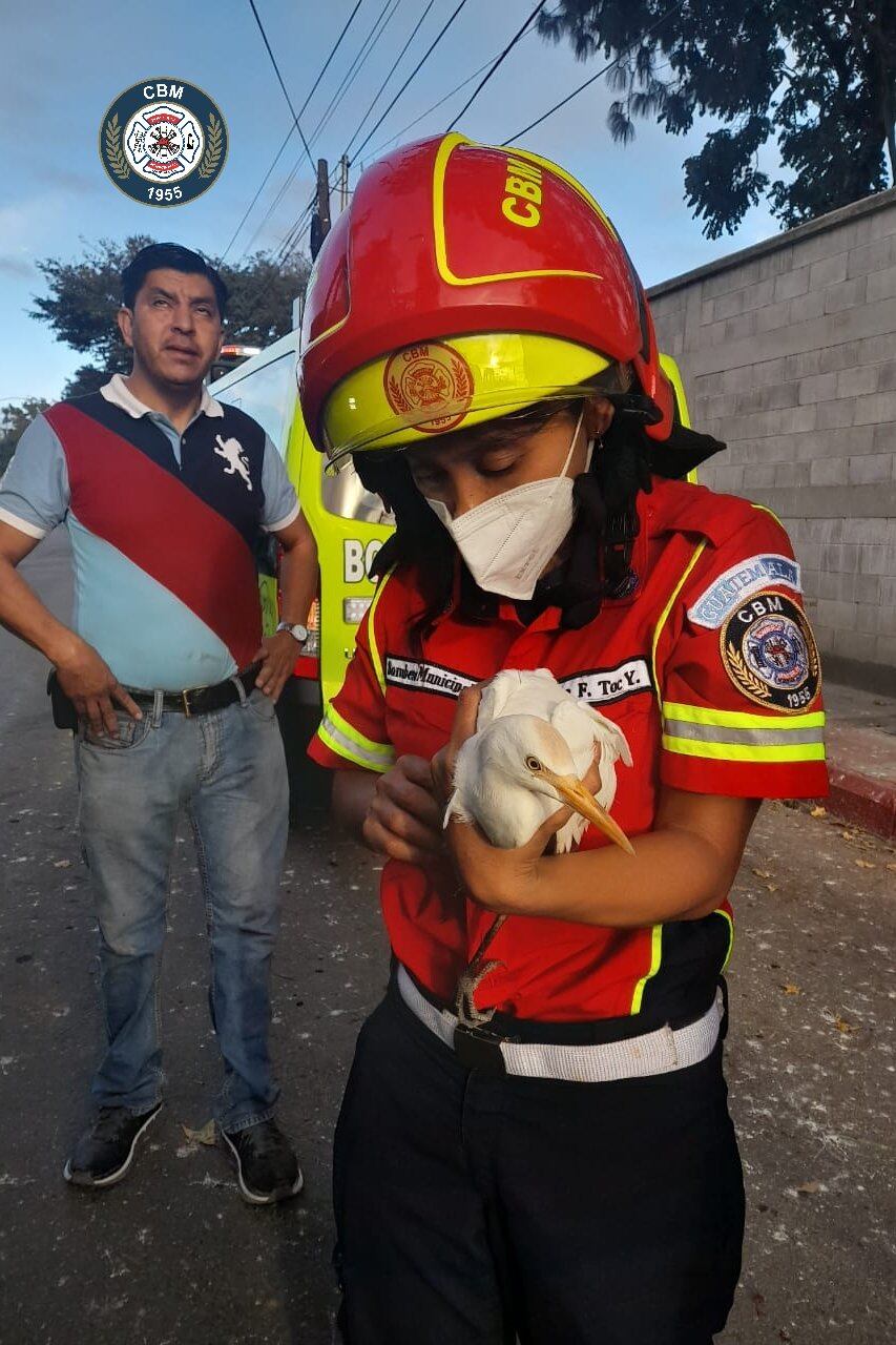 Entonces, los bomberos usaron una escalera para rescatar a las dos aves.