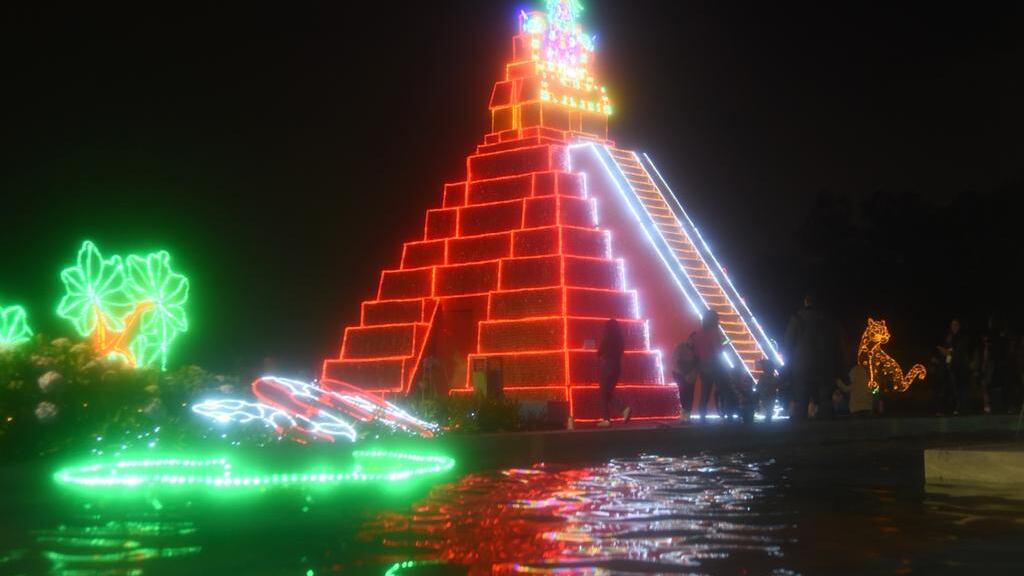 La compañía destacó que este año, en la plaza Berlín, la plaza Eucarística (Monumento al Papa) de la zona 13 y plaza Güipil, en zona 3 de la Ciudad capital, se rinde homenaje a Tikal, representando a través de estructuras artísticas la cultura, flora y fauna de Guatemala.