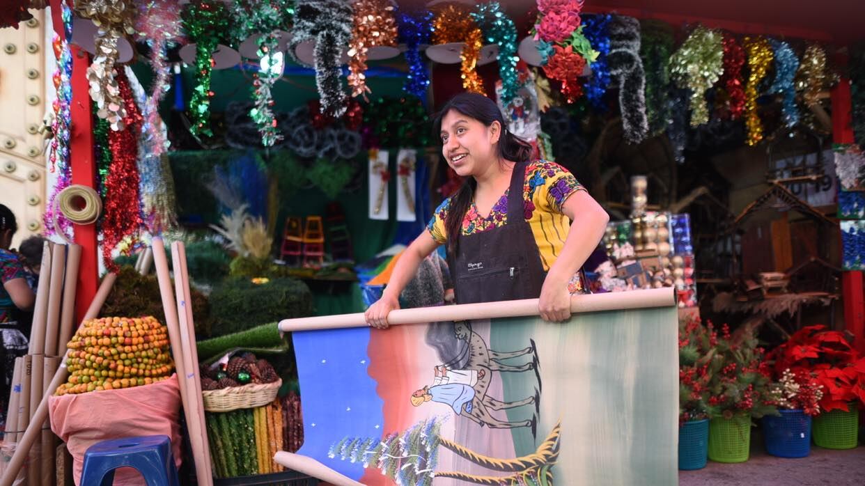 Marta Hernández, de Santa María de Jesús Sacatepéquez, tenía 10 años cuando sus padres la llevaron por primera vez a vender artículos navideños en el Mercado Sur La Placita.