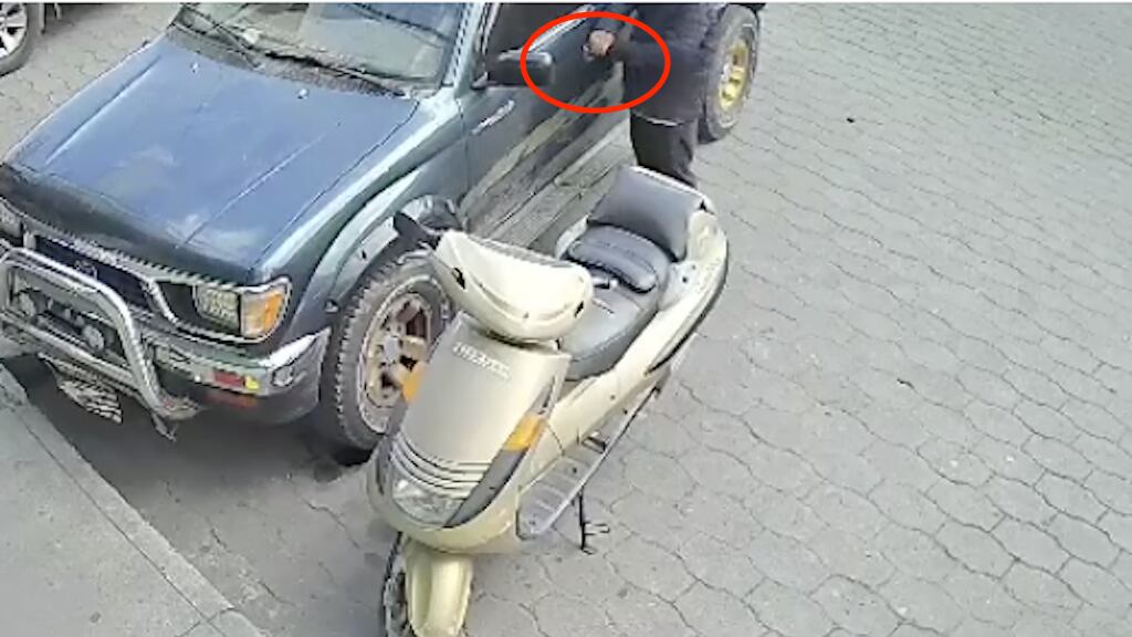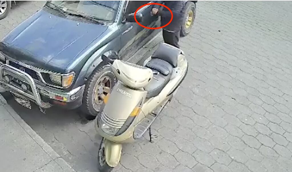 El video, que tiene una duración de 48 segundos, muestra a un hombre con vestimenta oscura, gorra y mascarilla, quien se acerca a la puerta del piloto del automotor, utiliza una ganzúa, lo abre, lo arranca y se lo lleva tranquilamente.