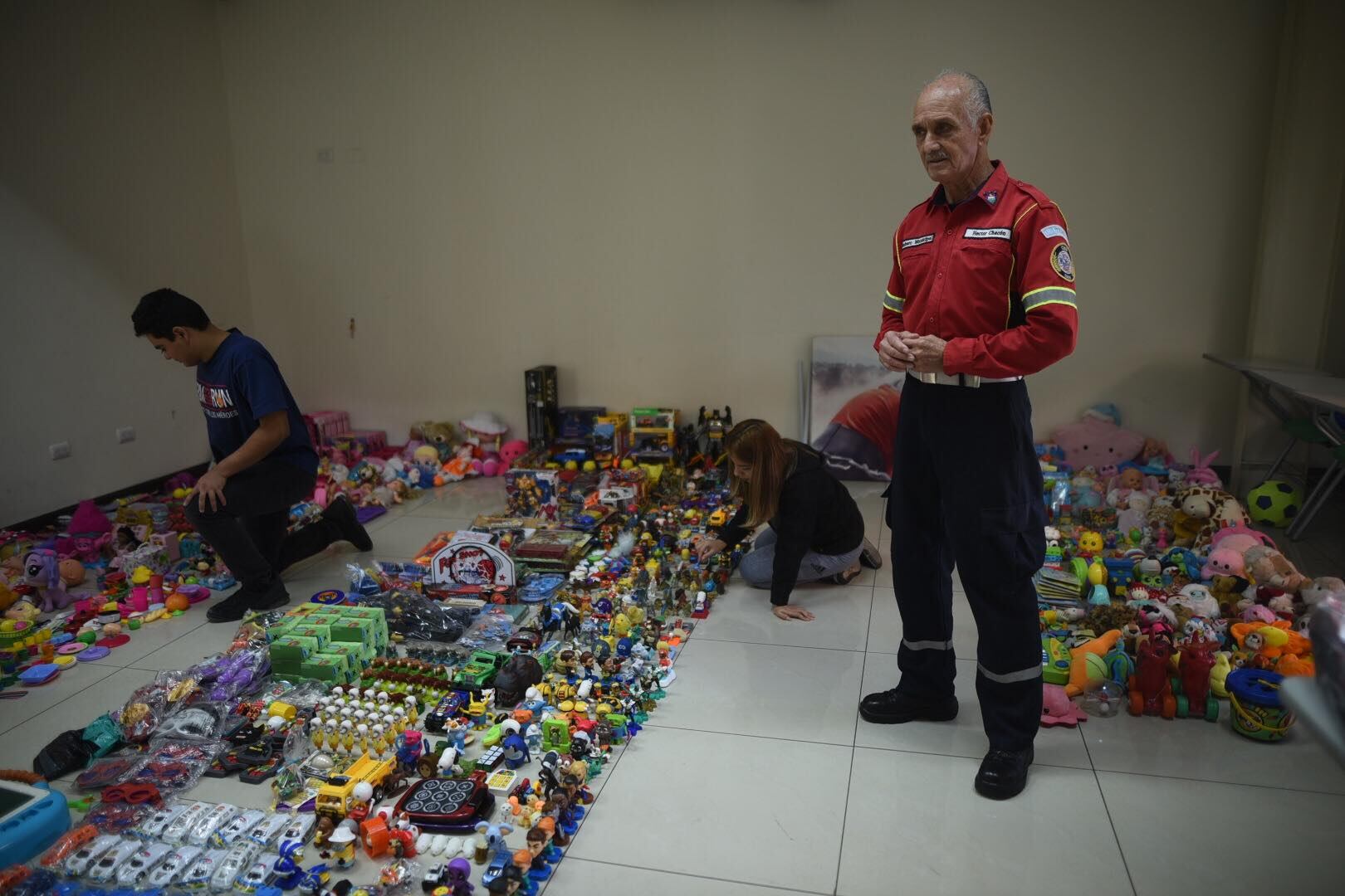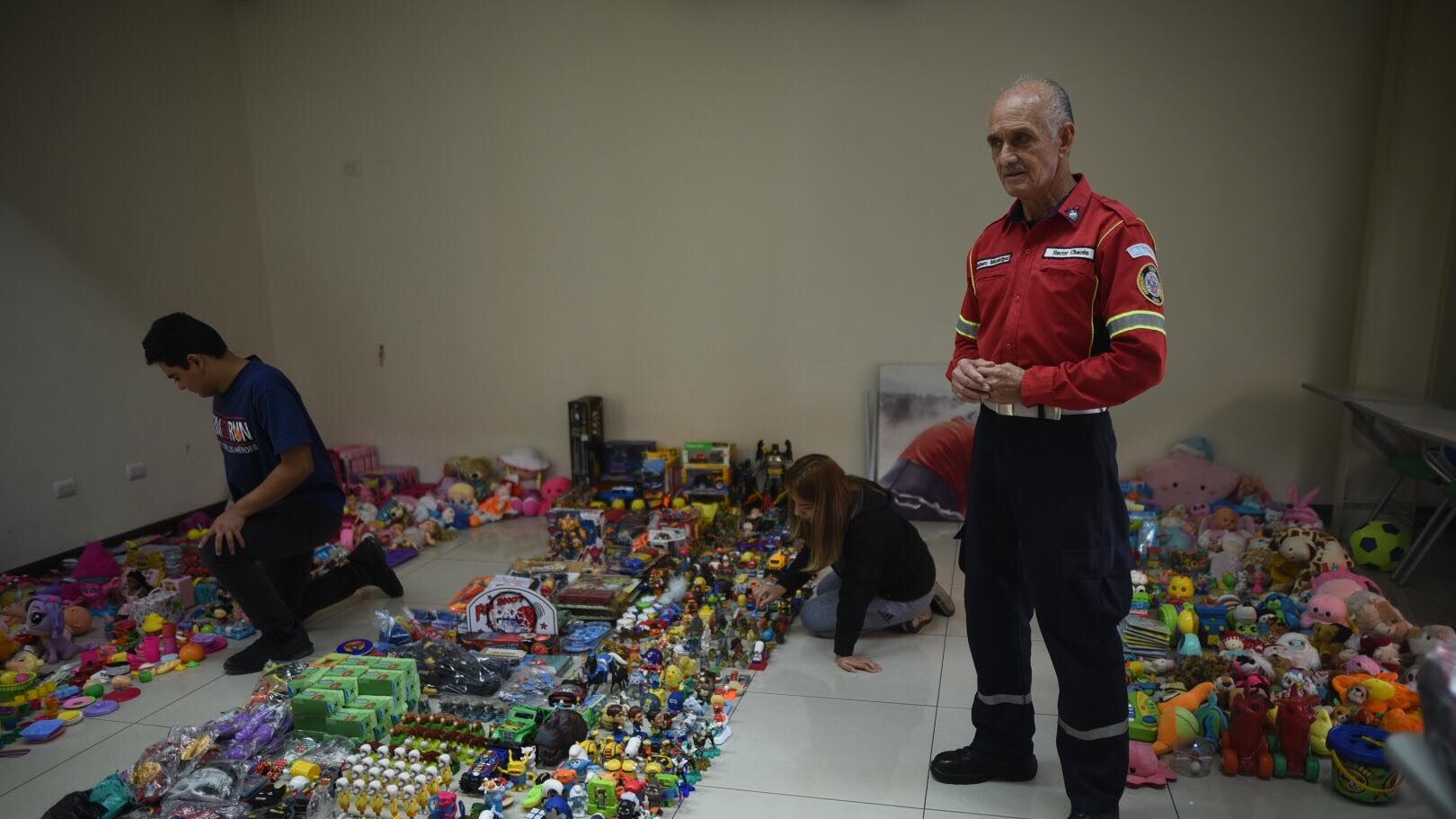 El Mayor de Bomberos Municipales, Héctor Chacón Cuellar, a sus 76 años continúa con la recepción de donaciones de juguetes para llevar sonrisas a alrededor de 400 niños y niñas de escasos recursos del asentamiento, Jesús de la Buena Esperanza, ubicado bajo el puente Las Vacas.