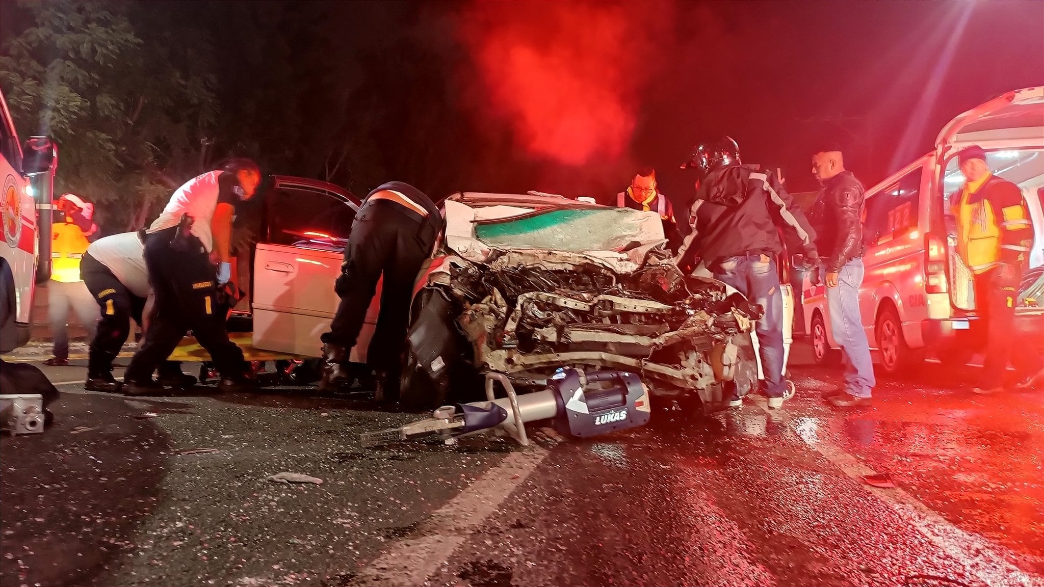 Bomberos Voluntarios reportaron dos accidentes de tránsito en la calzada Raúl Aguilar Batres, la madrugada de este miércoles 14 de diciembre, el primer hecho ocurrió en dicha calzada y 42 Calle, los bomberos utilizaron equipo especial para extraer a una pareja que quedó atrapada dentro de un vehículo accidentado.