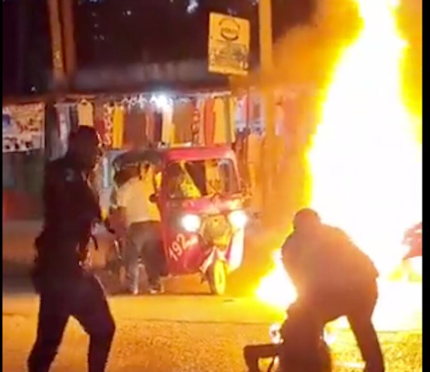 Los hechos tuvieron lugar en una carretera de Santa Elena, en Petén, en donde un policía arriesgo su propia vida para salvar al conductor de un mototaxi que quedó envuelto en fuego. La reacción del oficial fue a solo segundos de que la unidad estuviera completamente en llamas.