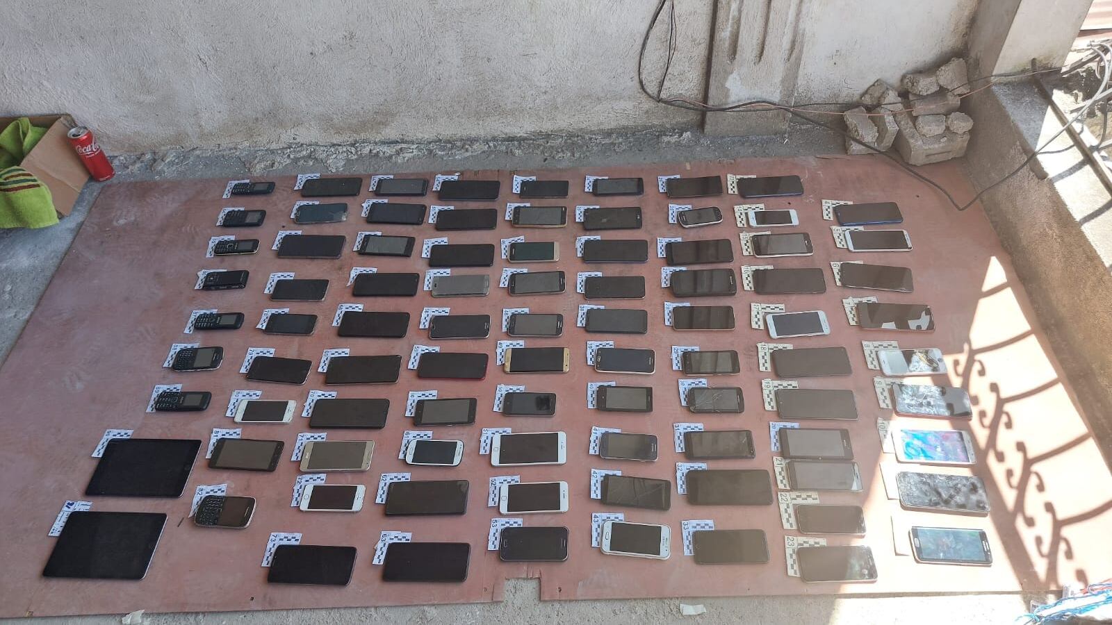 Durante los cateos los agentes incautaron gran cantidad de celulares y computadoras.
