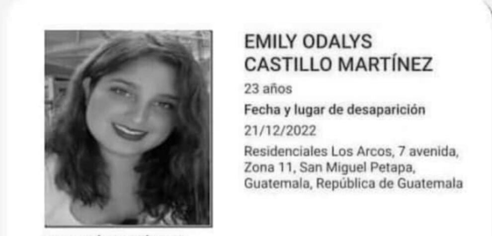 De acuerdo con la denuncia, la joven fue vista por última vez en el residencial Los Arcos en la zona 11 de San Miguel Petapa.