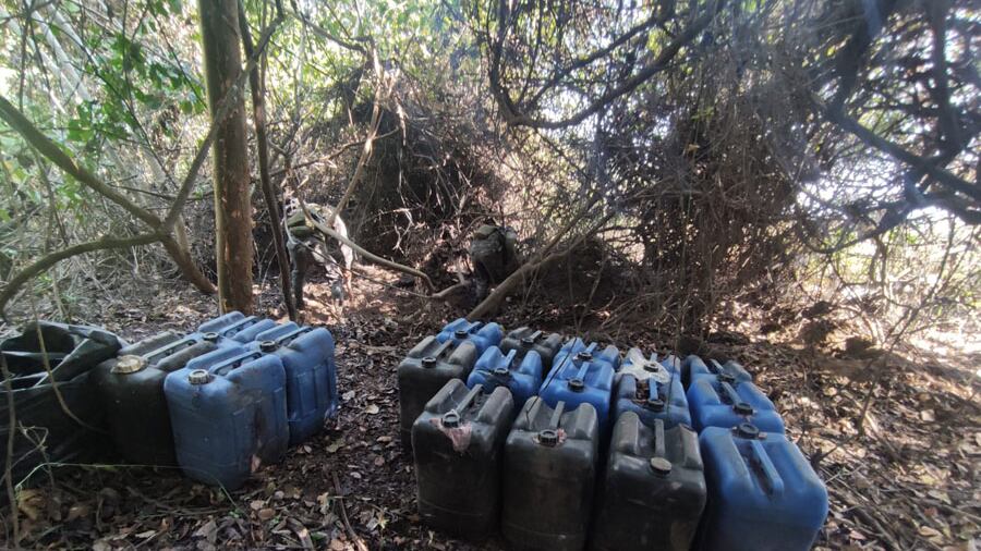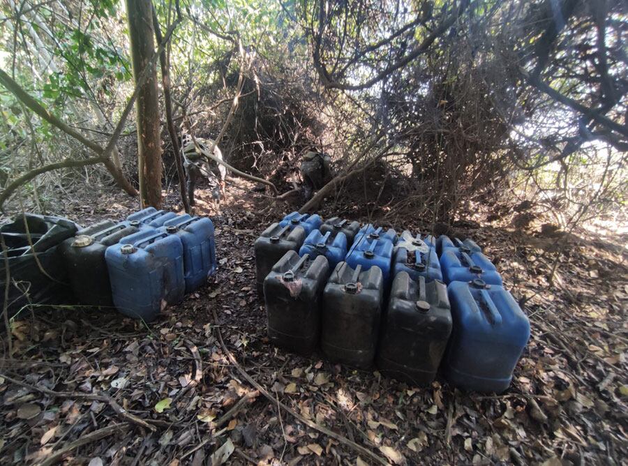 Los recipientes con el posible combustible se encontraban enterrados en una zona boscosa del punto antes mencionado.