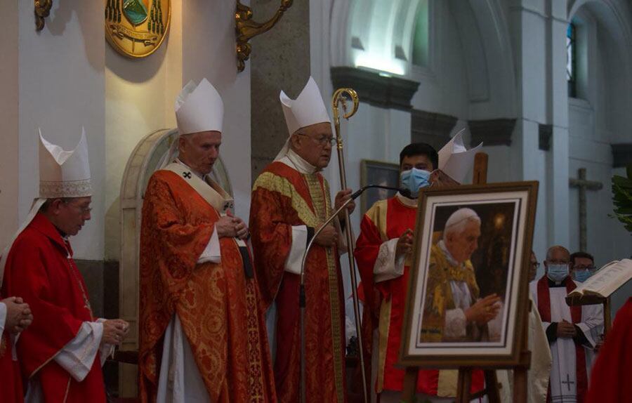 En la Santa Iglesia Catedral Metropolitana se llevó a cabo una misa por el eterno descanso del papa emérito Benedicto XVI, a las 12:00 horas del jueves, 5 de enero.