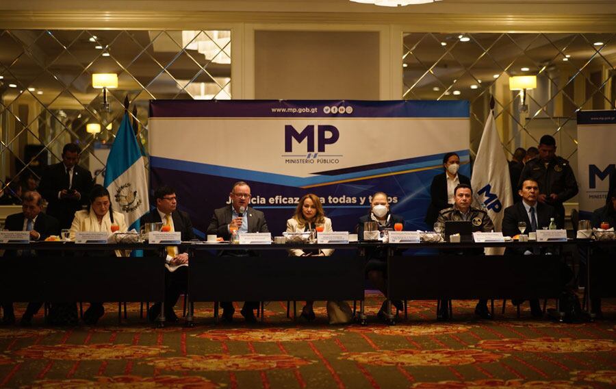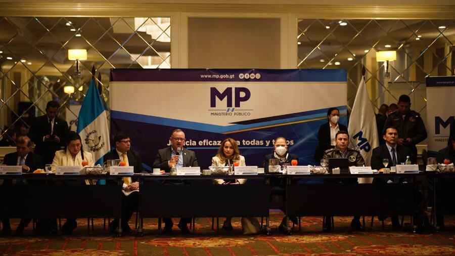 La fiscal general y jefa del Ministerio Público (MP), María Consuelo Porras Argueta, junto con autoridades del Tribunal Supremo Electoral (TSE), y los ministros de Gobernación (Mingob) y de la Defensa Nacional (Mindef), sostuvieron una reunión de coordinación interinstitucional para las Elecciones Generales 2023.