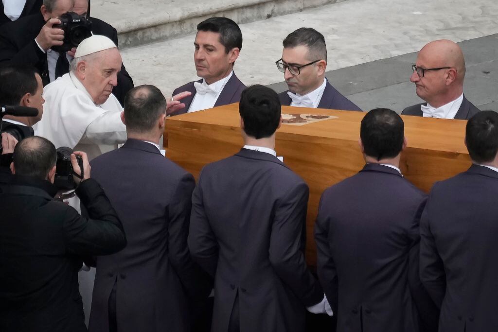El pontífice presidió la misa desde una silla de ruedas y oró por el eterno descanso de su predecesor. “Benedicto (…) que tu gozo sea perfecto al oír definitivamente y para siempre la voz” del Señor, suplicó el Papa, destacando la “sabiduría, delicadeza y entrega” de Benedicto XVI. Poco después, el féretro fue transportado al interior de la basílica de San Pedro para su sepultura.