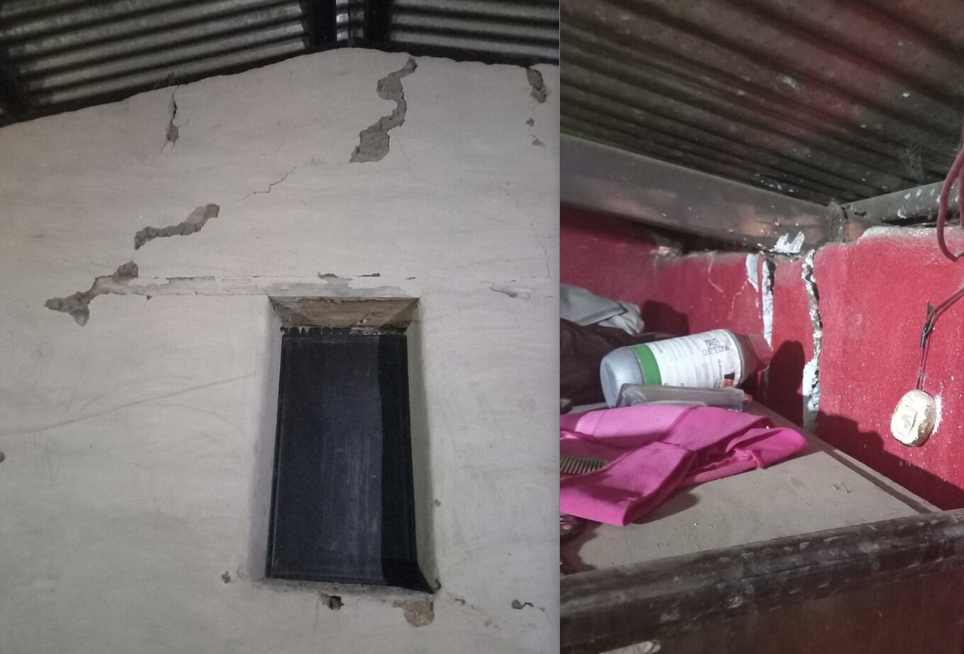También equipo especializado de Protección Civil realizaba la inspección de viviendas “con afectaciones (grietas)” en la comunidad La Dantilla, Ahuachapán.