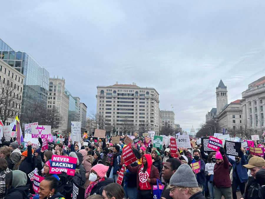 En Nueva York, unas 300 personas marcharon con los mismos lemas que enarbolaban las mujeres en la década de 1970: “My body, my choice” (Mi cuerpo, mi derecho).