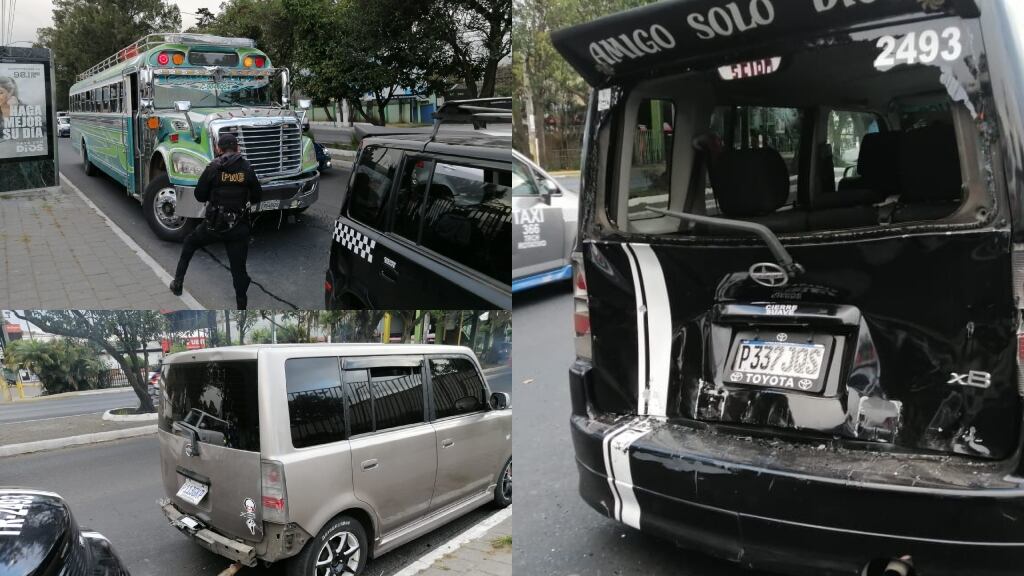 Morales también informó sobre una triple colisión que se registra entre la 5a. y 10a. avenida de la calzada San Juan hacia la capital. En ese lugar chocó un bus extraurbano contra dos vehículos tipo taxi que estaban estacionado. El gerente de EMIXTRA indicó que solo se reportan daños materiales.