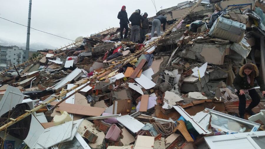 Imágenes de la televisión turca y redes sociales mostraron a los rescatistas escarbando entre los escombros de edificios caídos en la ciudad de Kahramanmaras y la vecina Gaziantep.