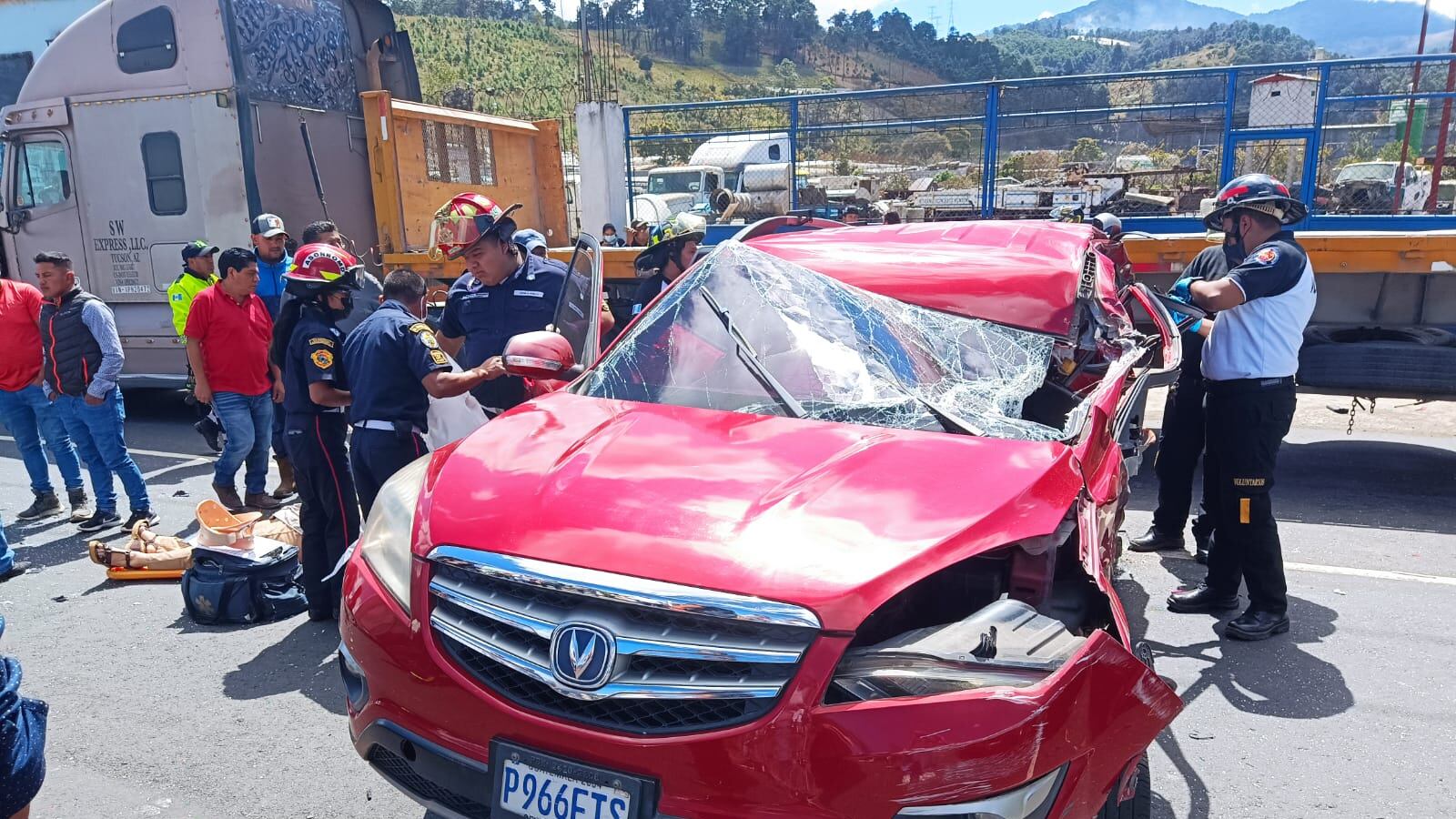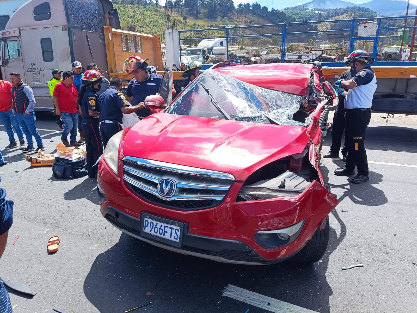 El vehículo en que se conducían venía en dirección de Carretera a El Salvador hacia Ciudad de Guatemala. Se dio a conocer que el automotor chocó contra un árbol de la acera central. El impacto provocó que varias partes del mismo quedaran en los alrededores.