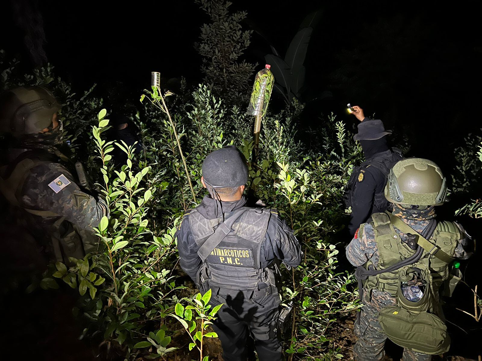El hallazgo se realizó en un terreno con una extensión de 5,192 metros cuadrados; asimismo, un vivero con pilones de estos arbustos, con una altura promedio de 30 centímetros, por lo que dieron aviso a las autoridades de la Subdirección General de Análisis de Información Antinarcótica de la Policía Nacional Civil.