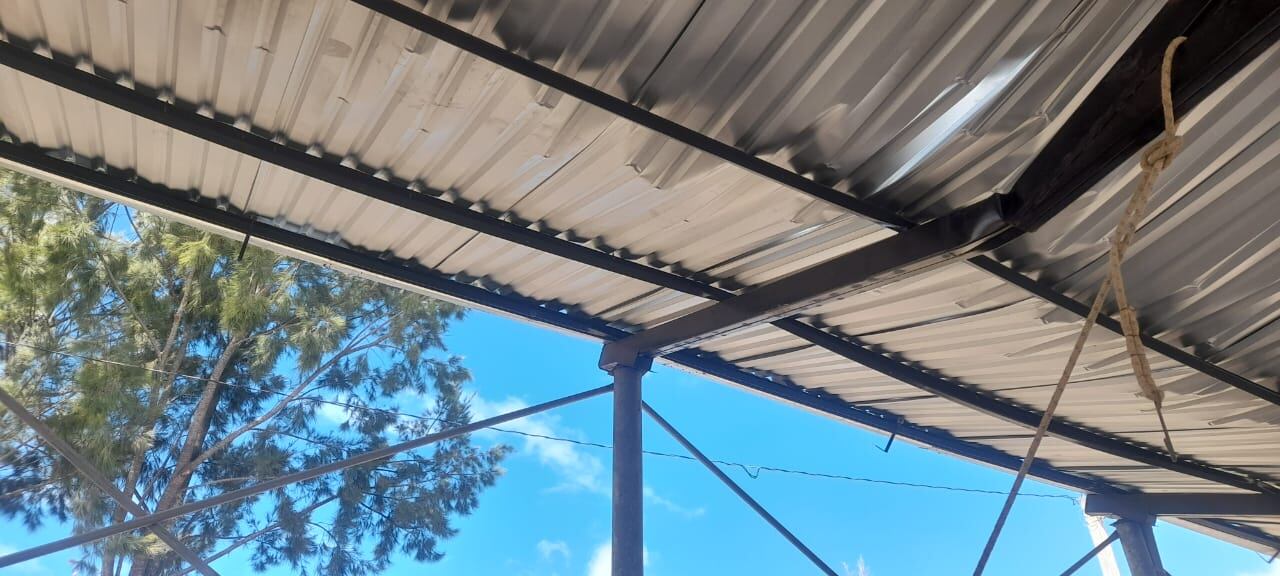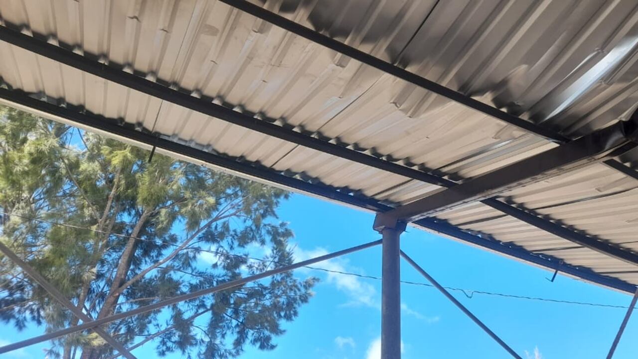 Los fuertes vientos dañaron la estructura del techo de la cancha polideportiva de la Escuela Oficial Rural Mixta en el caserío Los Pozos, ubicada en la aldea Pichiquil, Aguacatán, Huehuetenango.