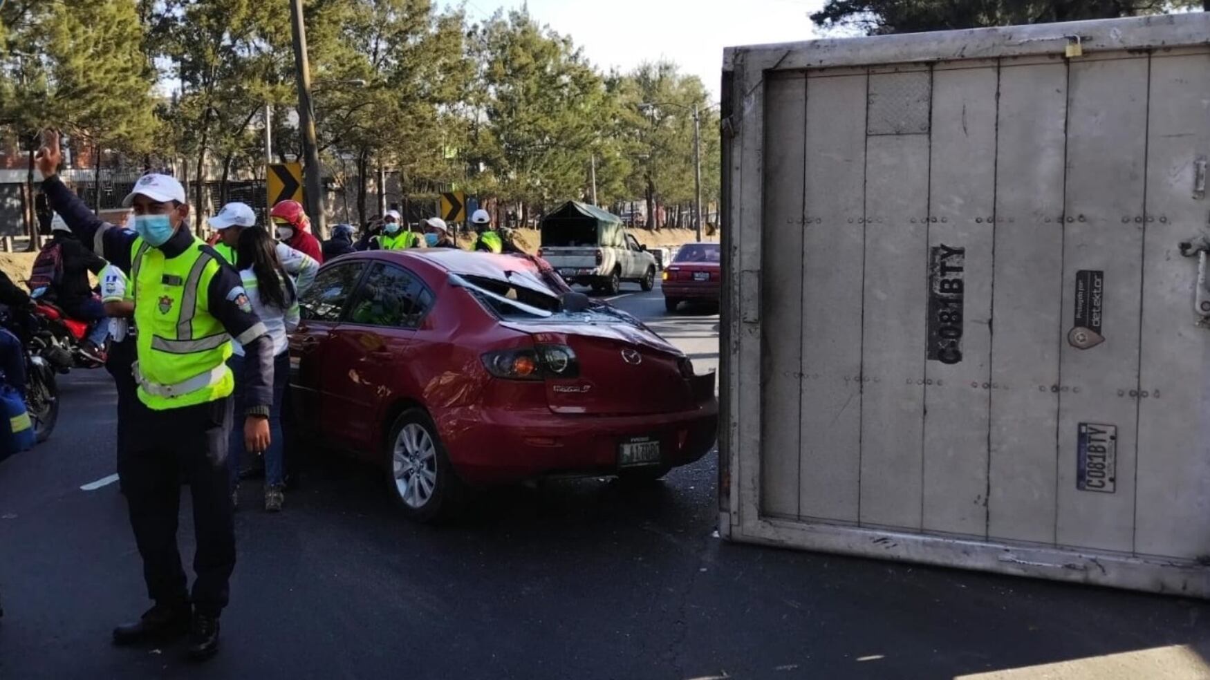 Un aparatoso accidente de tránsito se registró la mañana de este 23 de febrero, en la parte baja del Puente Villa Linda, Anillo Periférico de la zona 7, de la capital, informaron los Bomberos Municipales.