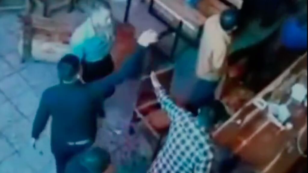 El clip, que dura 42 segundos, fue compartido por el usuario de Twitter @manuelale69, el cual describió como: “Pelea anoche en un bar de la ciudad. #peleascallejeras“. En la grabación se observa cuando un grupo de personas se lanzan objetos y botellas. Mientras que otros clientes tratan de resguardarse.