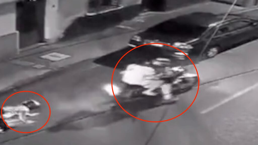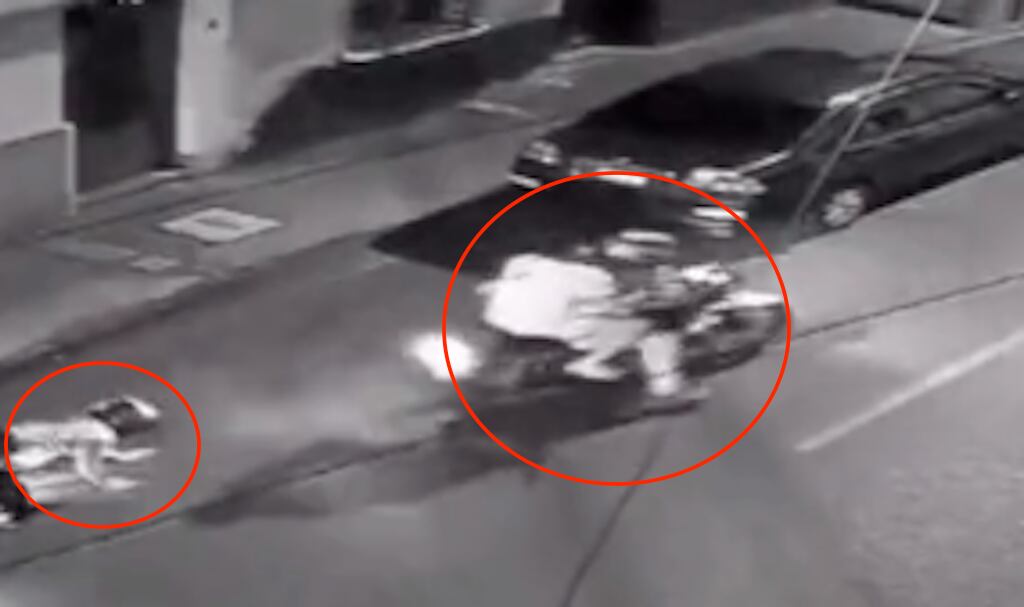 Tras lograr su cometido, los motoladrones huyen del lugar. En las imágenes se puede observar que una de las víctimas salió corriendo para detener a los desconocidos. El hecho se registró durante la noche del domingo, 27 de febrero de 2023.