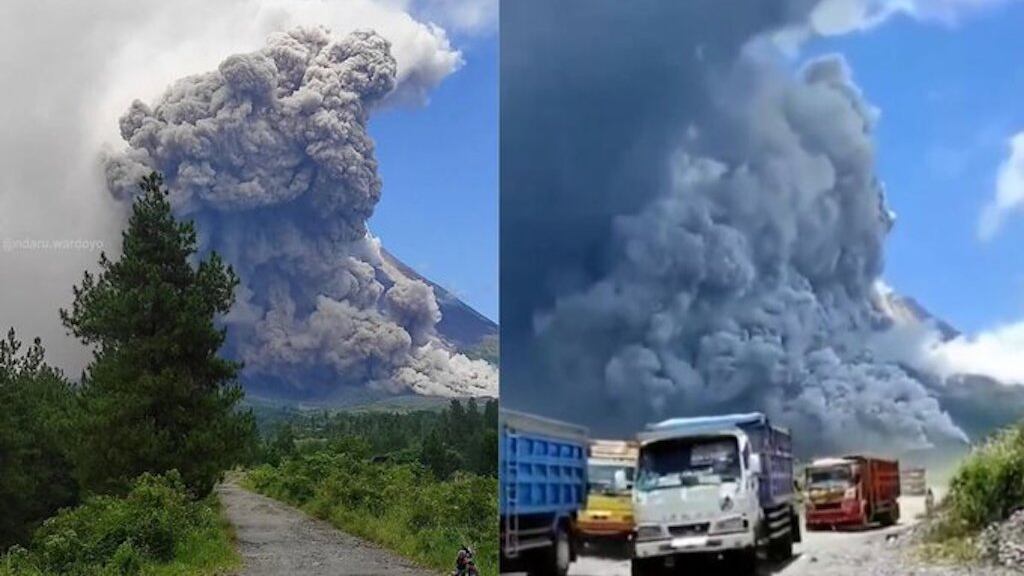 Casas y carreteras de un pueblo cercano al volcán quedaron recubiertos de cenizas, según imágenes de la televisión local Kompas TV. El observatorio del volcán Merapi estimó que la nube de cenizas alcanzó los 3 mil metros por encima de la cima. Tras la erupción, a las 12:12 horas locales, las autoridades establecieron una zona de restricción de 7 kilómetros alrededor del cráter.