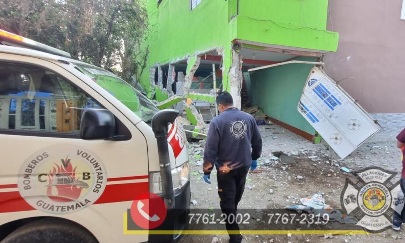 Debido a una fuga de gas propano en una vivienda se originó una explosión, Bomberos Voluntarios fueron alertados por las llamadas de auxilio y tras estabilizar a una mujer que sufrió quemaduras en el 80 por ciento de su cuerpo fue trasladada en estado delicado a la emergencia del Hospital Regional de Occidente (HRO) de Quetzaltenango.