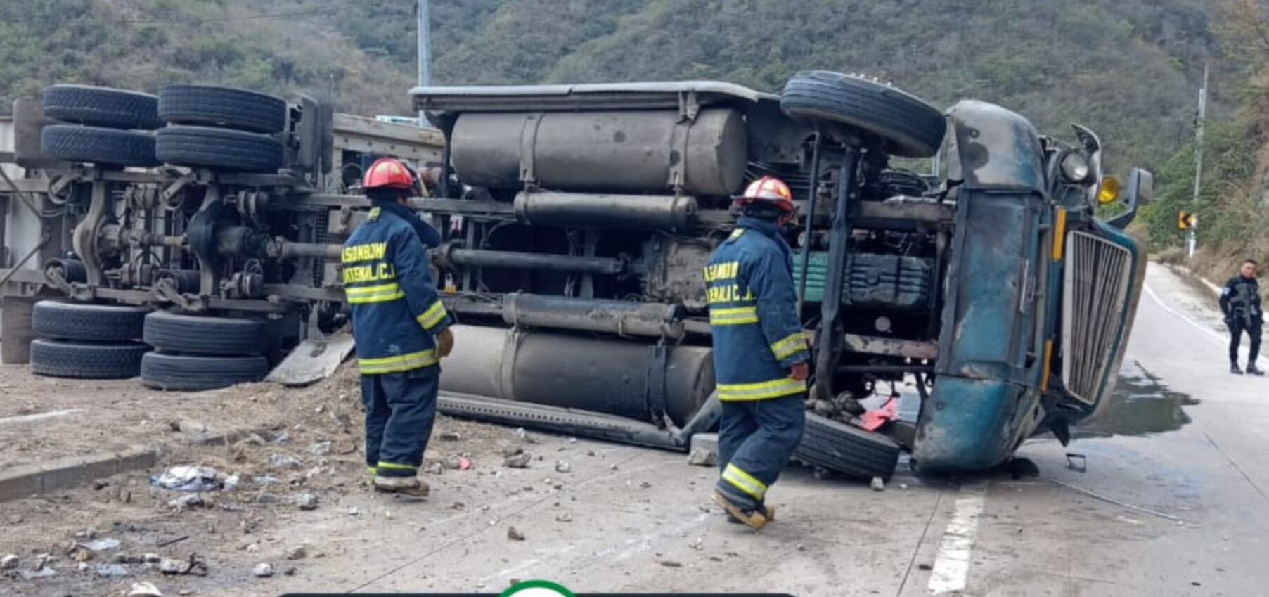 Durante la mañana de este 16 de marzo también se reportaron incidentes viales en los que se encuentra involucrado el transporte pesado. En el kilómetro 13 de la ruta al Pacífico, un camión se encuneto, Bomberos Municipales atendieron a una persona que presenta únicamente crisis nerviosa.