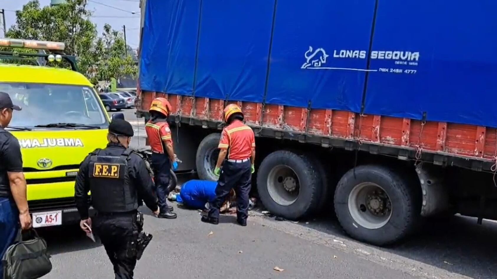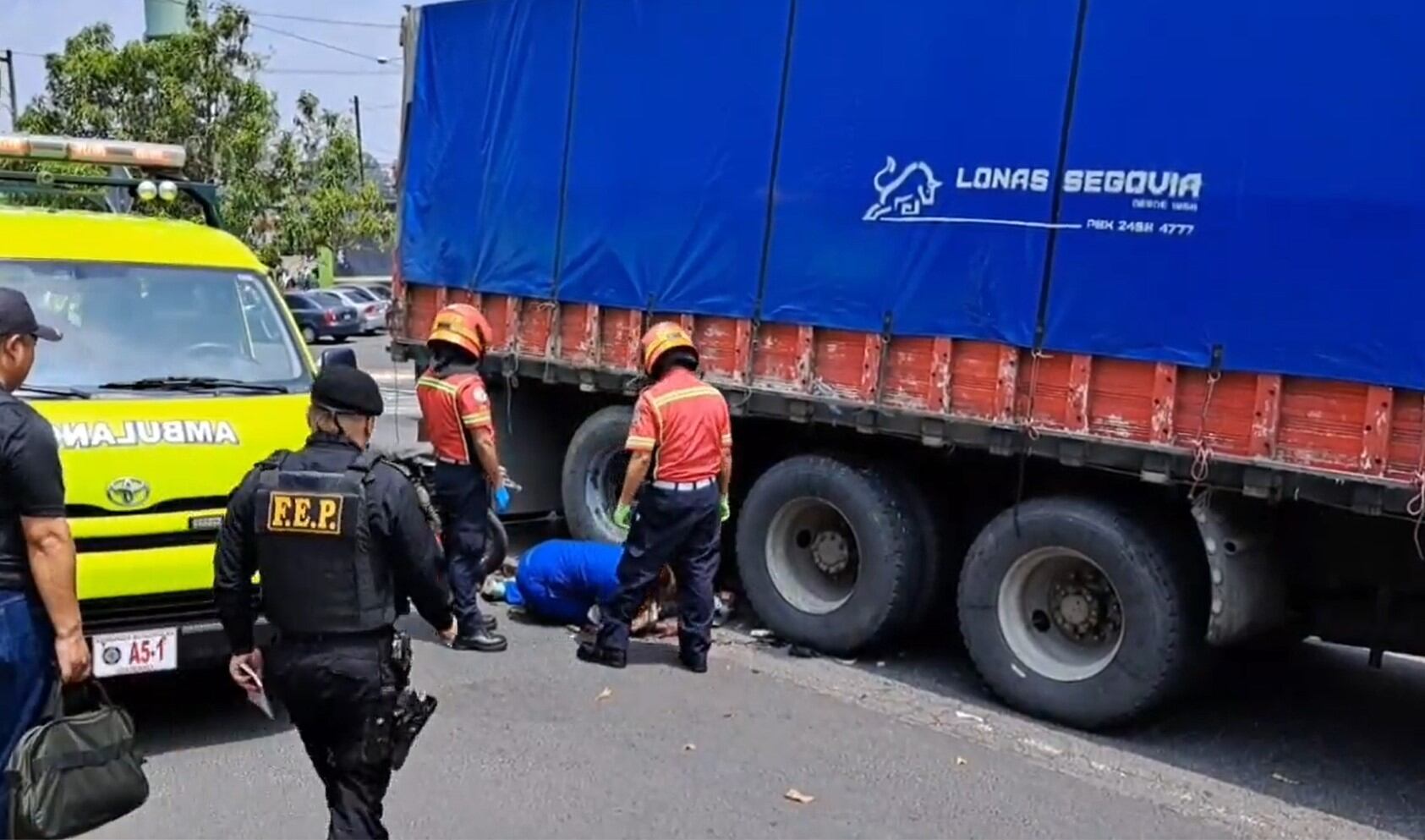 De acuerdo con el oficial de bomberos, Omar Valle, un hombre junto a su hijo viajaban en una motocicleta, cuando fueron impactos por el vehículo pesado, lo que provocó que ambos cayeran y quedaran bajo el camión.