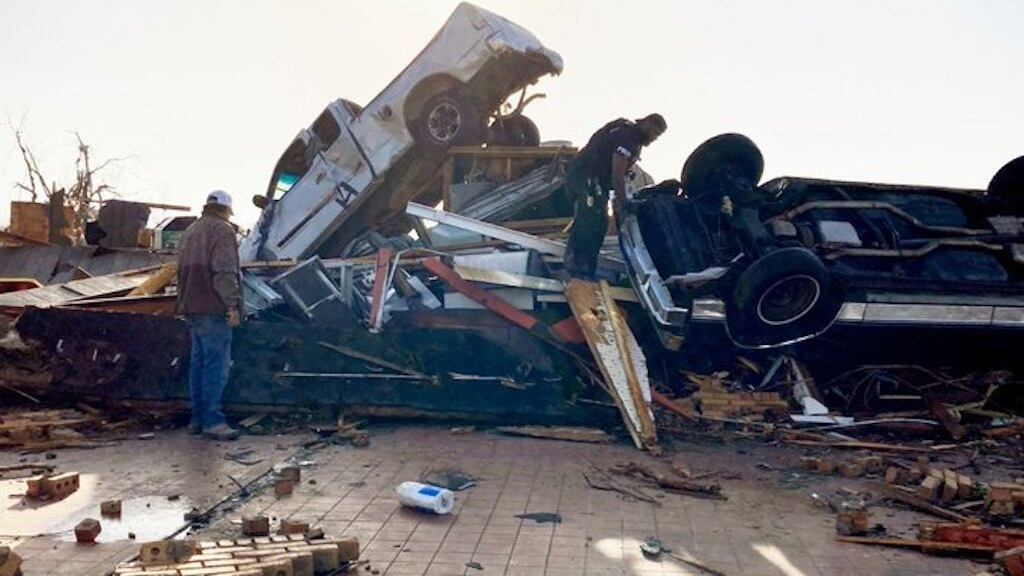 “Mi ciudad ha desaparecido”, dijo el alcalde de Rolling Fork, Eldridge Walker, en el condado de Sharkey a la WJTV: “Lo que encontramos es devastación a nuestro alrededor”.
