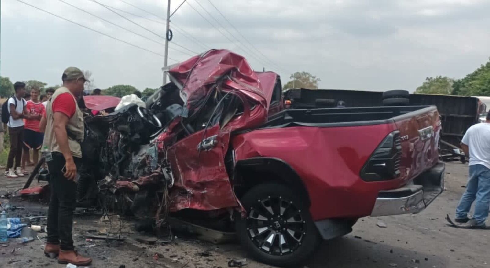 Los cuerpos de socorro reportaron un accidente de tránsito entre un picop, un camión y un bus del transporte extra urbano, este lunes 27 de marzo, a la altura del kilómetro 87.5 de Ruta CA-2 Oriente, ruta que de Escuintla conduce hacia Taxisco, Santa Rosa, el cual dejó cuatro personas fallecidas.