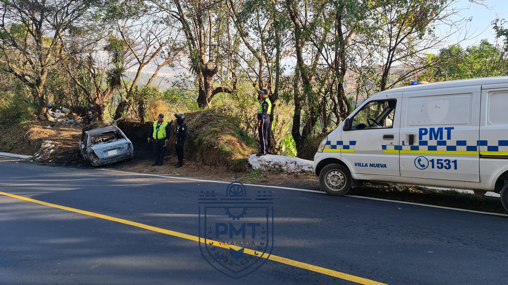 La Policía Municipal de Tránsito de (PMT) de Villa Nueva, informó que la mañana de este 3 de abril, fue localizado un vehículo que fue calcinado y abandonado en la ruta que comunica de Naciones Unidas, Villa Nueva hacia Amatitlán.