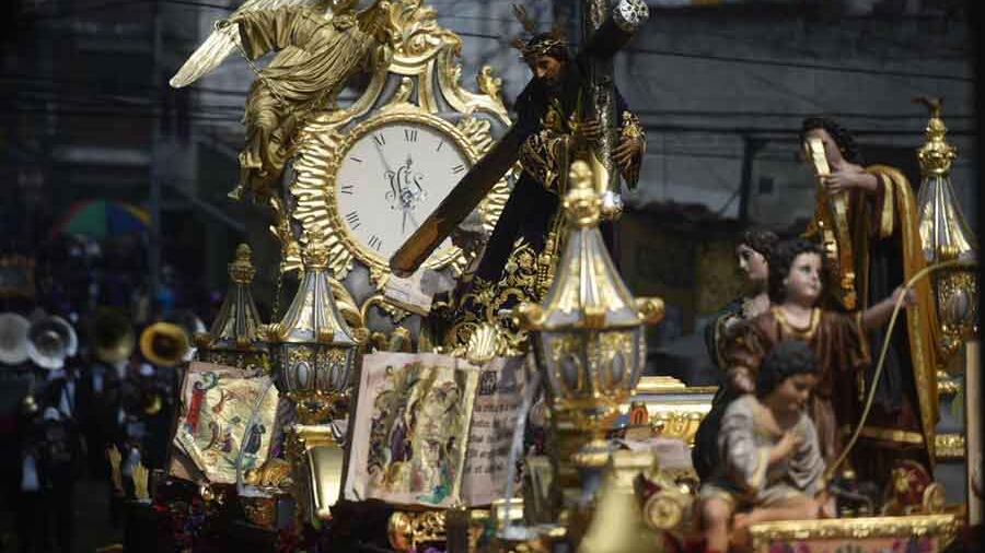 La consagrada imagen de Jesús de las Tres Potencias es llevado en hombros en un nuevo Lunes Santo, aunque con toda la parafernalia característica de dicho cortejo procesional que engalana la zona 6 y parte del Centro Histórico, desde su salida de la Parroquia de la Santa Cruz del Milagro.