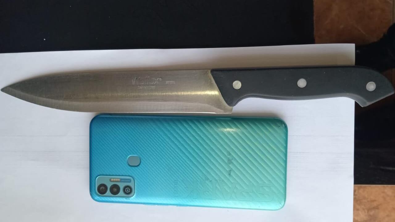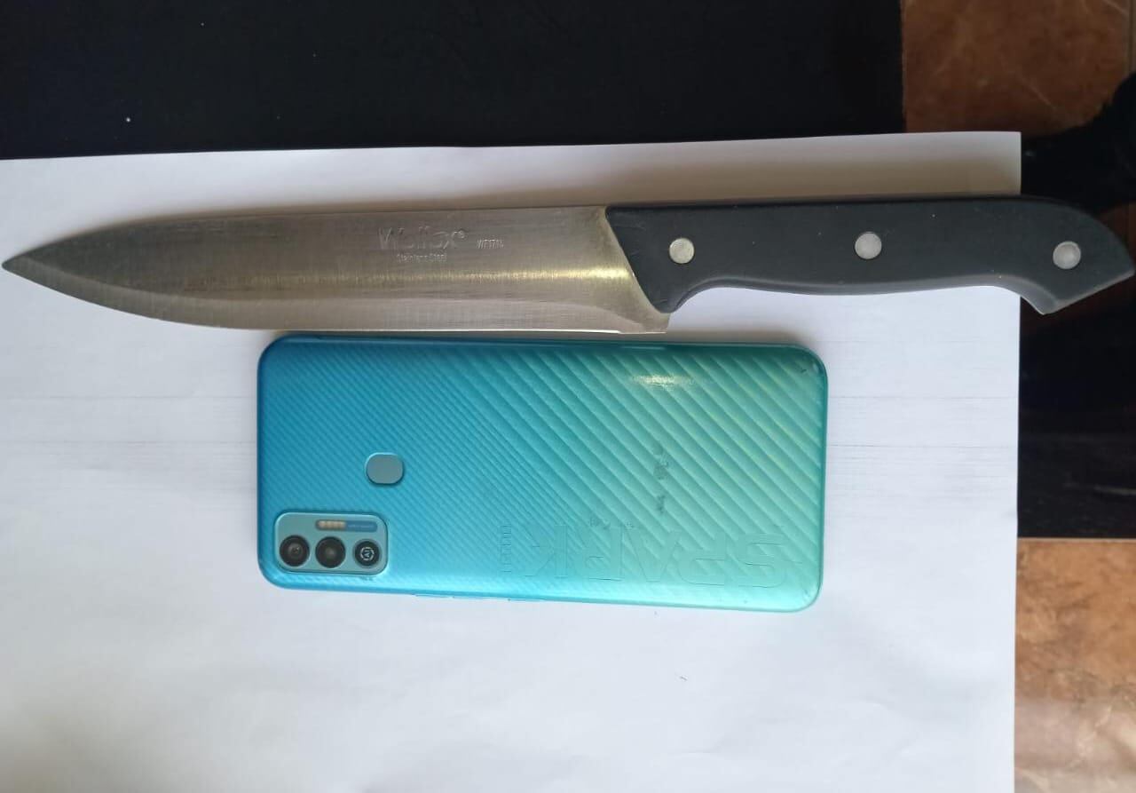 El cuchillo y el teléfono fue entregado a la Policía, para que el individuo fuera consignado a un juzgado de turno.