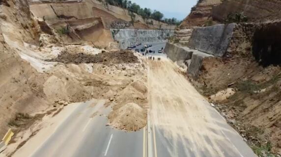 La Dirección General de Caminos y el Cuerpo de Ingenieros del Ejército de Guatemala también apoyó en las labores para el retiro de material que obstaculizó totalmente el paso vehicular en ese tramo carretero inaugurado durante el gobierno de Jimmy Morales y por el cual se pagaron más de Q500 millones.