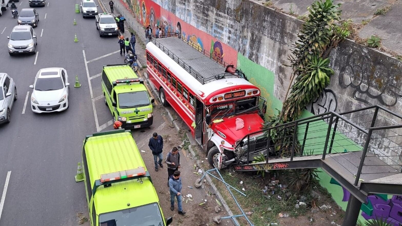 Un bus del transporte público chocó contra la base de una pasarela en la calzada calzada Raúl Aguilar Batres y 49 calle de la zona 12, la mañana de este jueves 20 de abril y mató a una mujer utilizaba la pasarela.