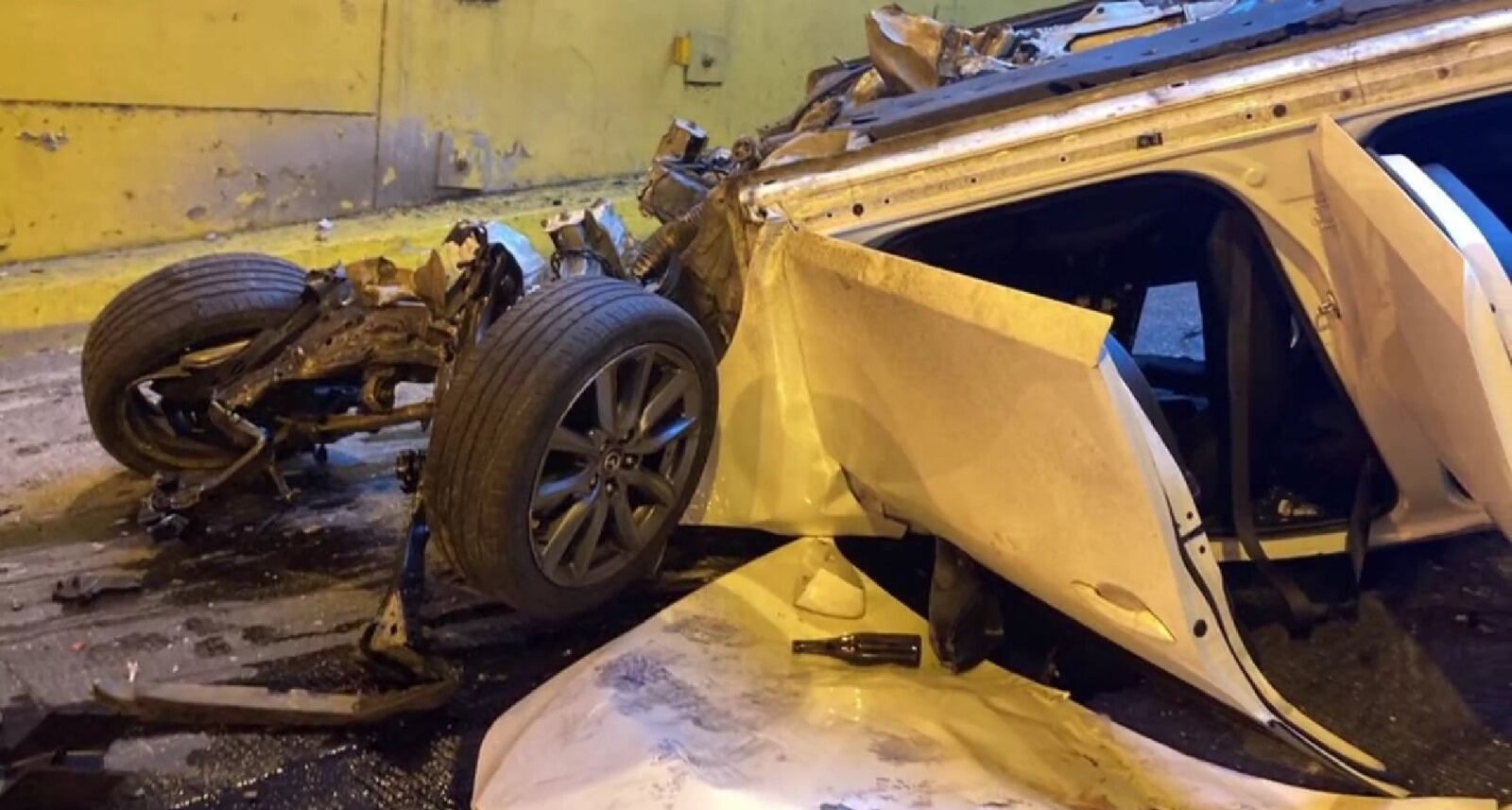 En las redes sociales se ha difundido un video capturado después del accidente de tránsito, en el cual se observa a dos jóvenes salir de un sedán de color blanco y caminar alejándose del vehículo.