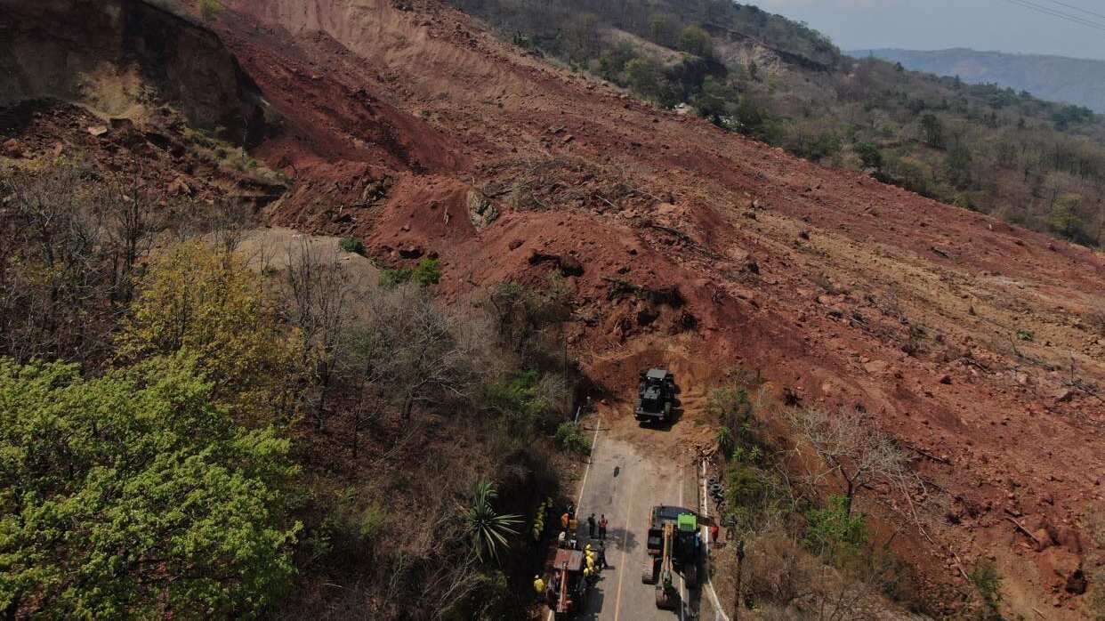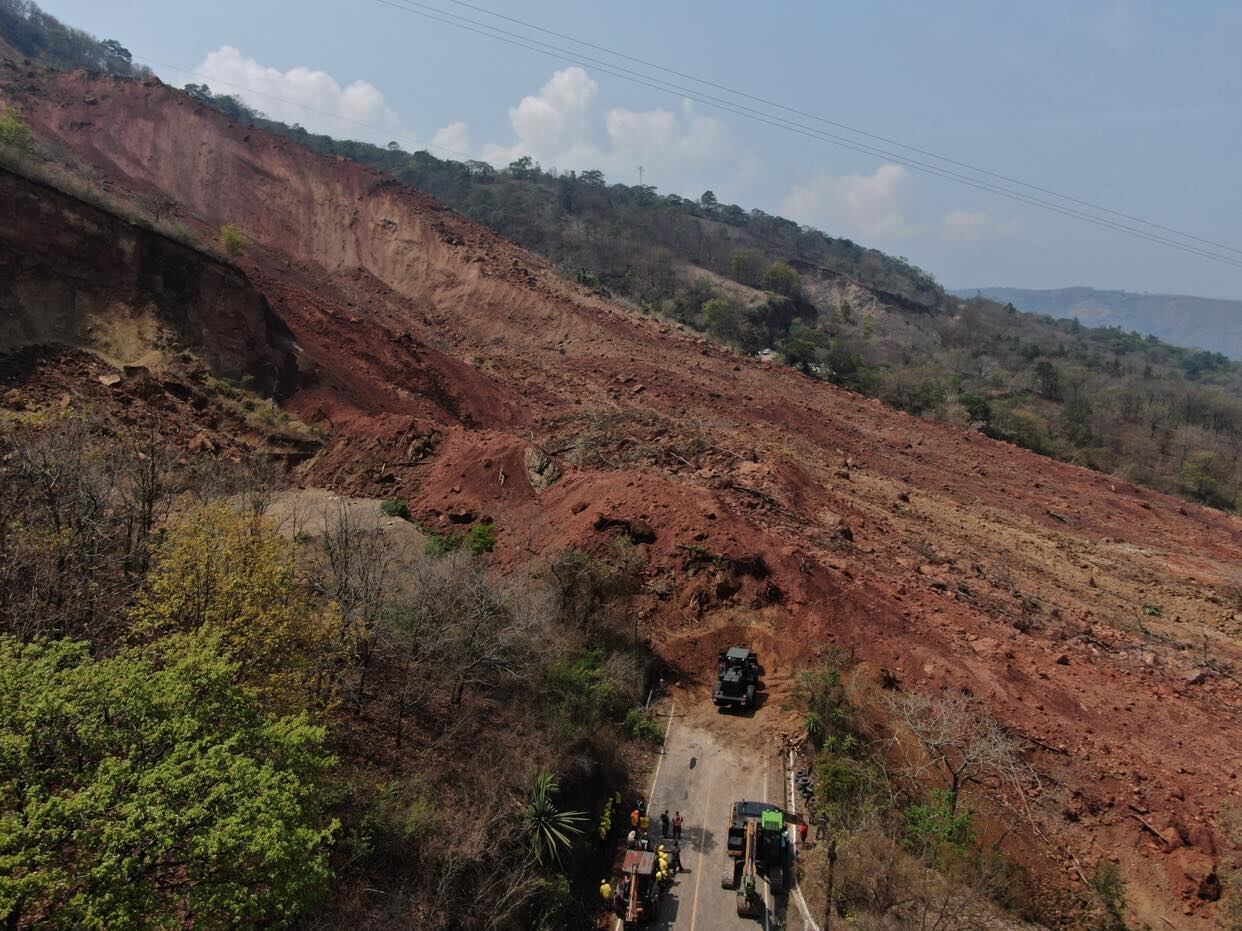 La Dirección General de Protección y Seguridad Vial (Provial) detalló que en el área permanecen brigadas de la institución para brindar apoyo, tomando en cuenta que hay labores en desarrollo para retirar la tierra.