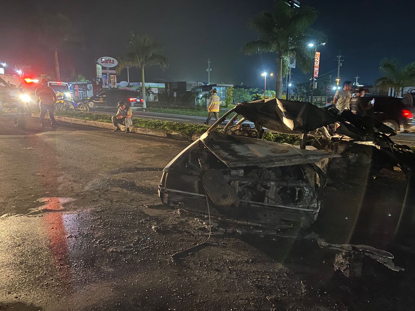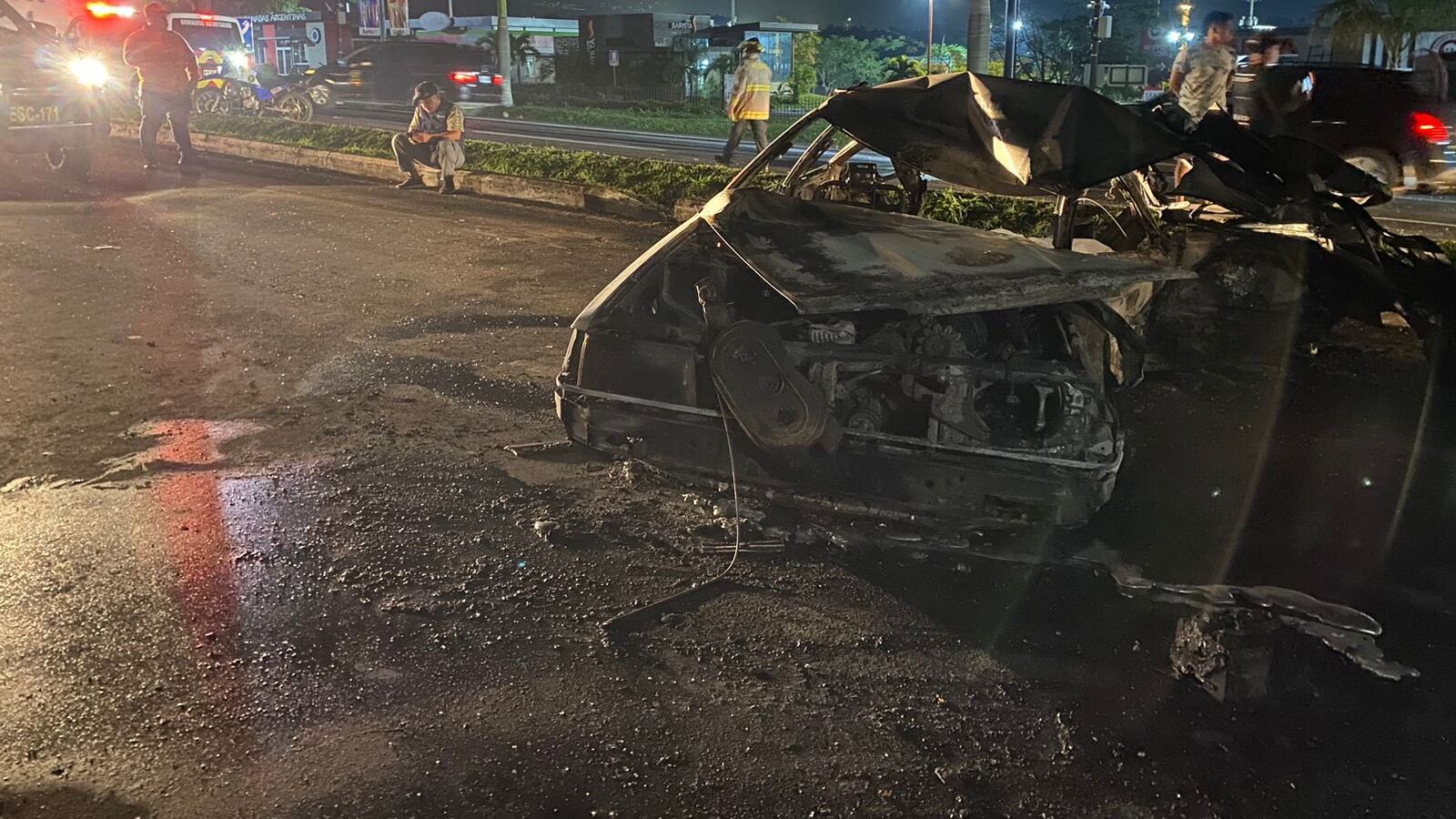A la llegada de los socorristas se localizó un vehículo en llamas producto de la colisión, por lo que de inmediato controlaron el fuego; sin embargo, localizaron dentro del vehículo a una persona que había muerto a consecuencia de las quemaduras. Bomberos dieron aviso al personal de la Policía Nacional Civil (PNC) para que se hicieran cargo de los procedimientos.